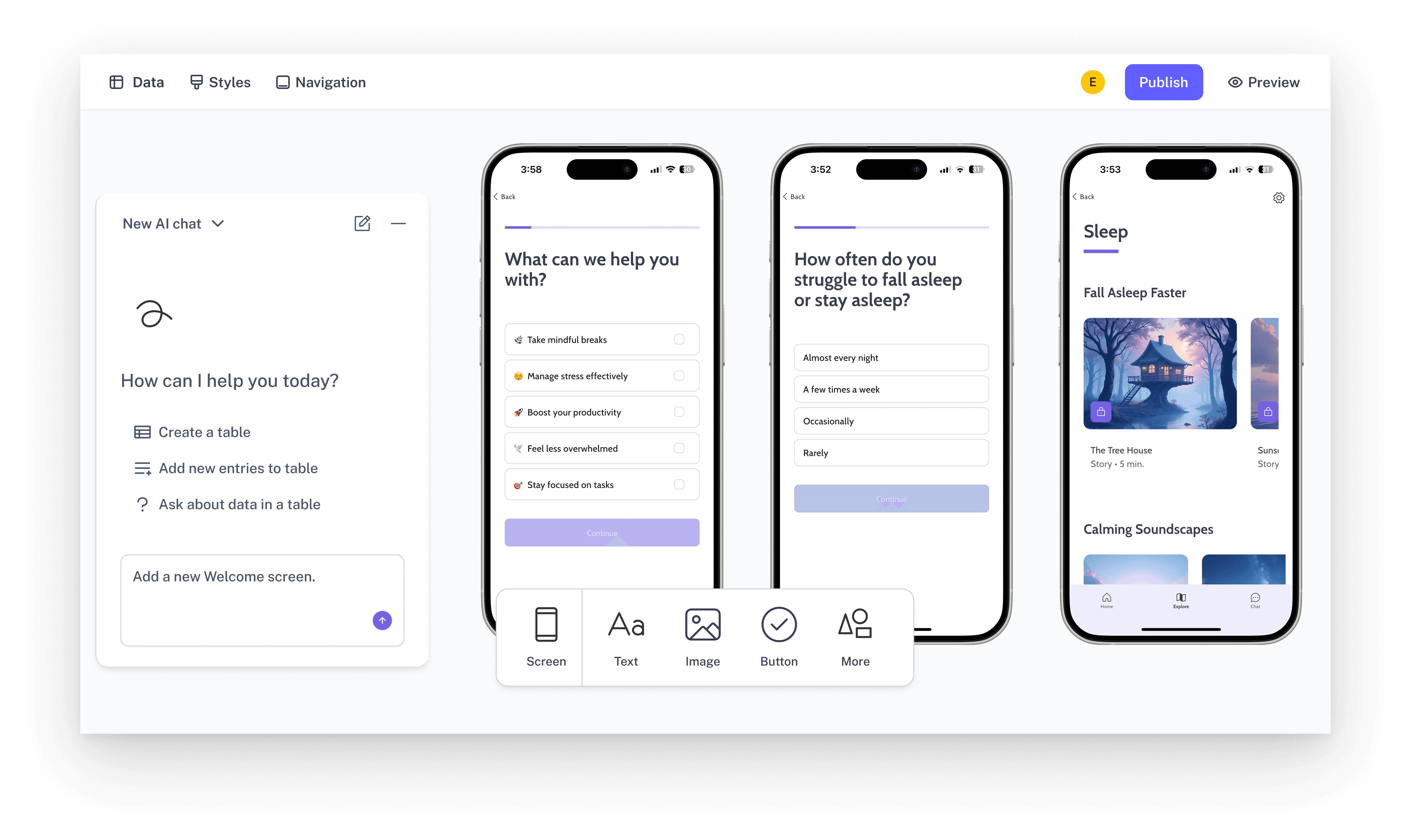 Bring your ideas to life with our drag-and-drop app builder. Choose from our library of building blocks or create your own.
