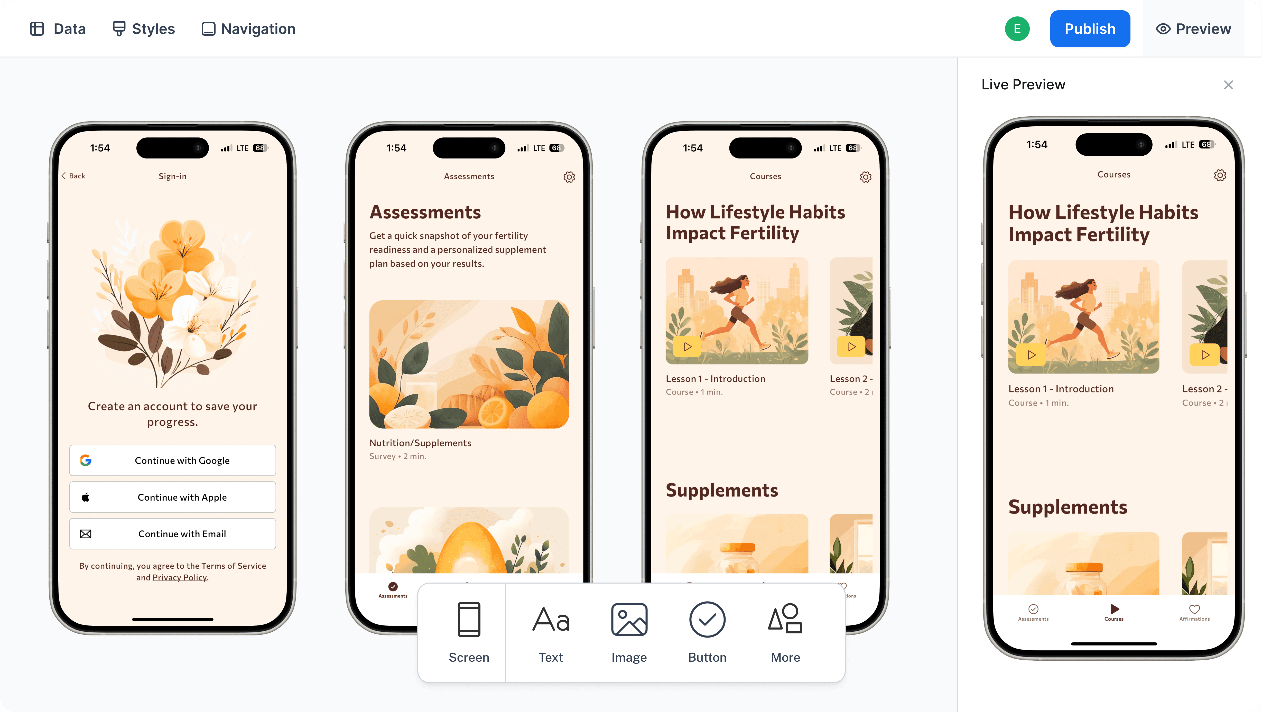 Launch your app on the App Store, Google Play, and the web with just a few clicks.